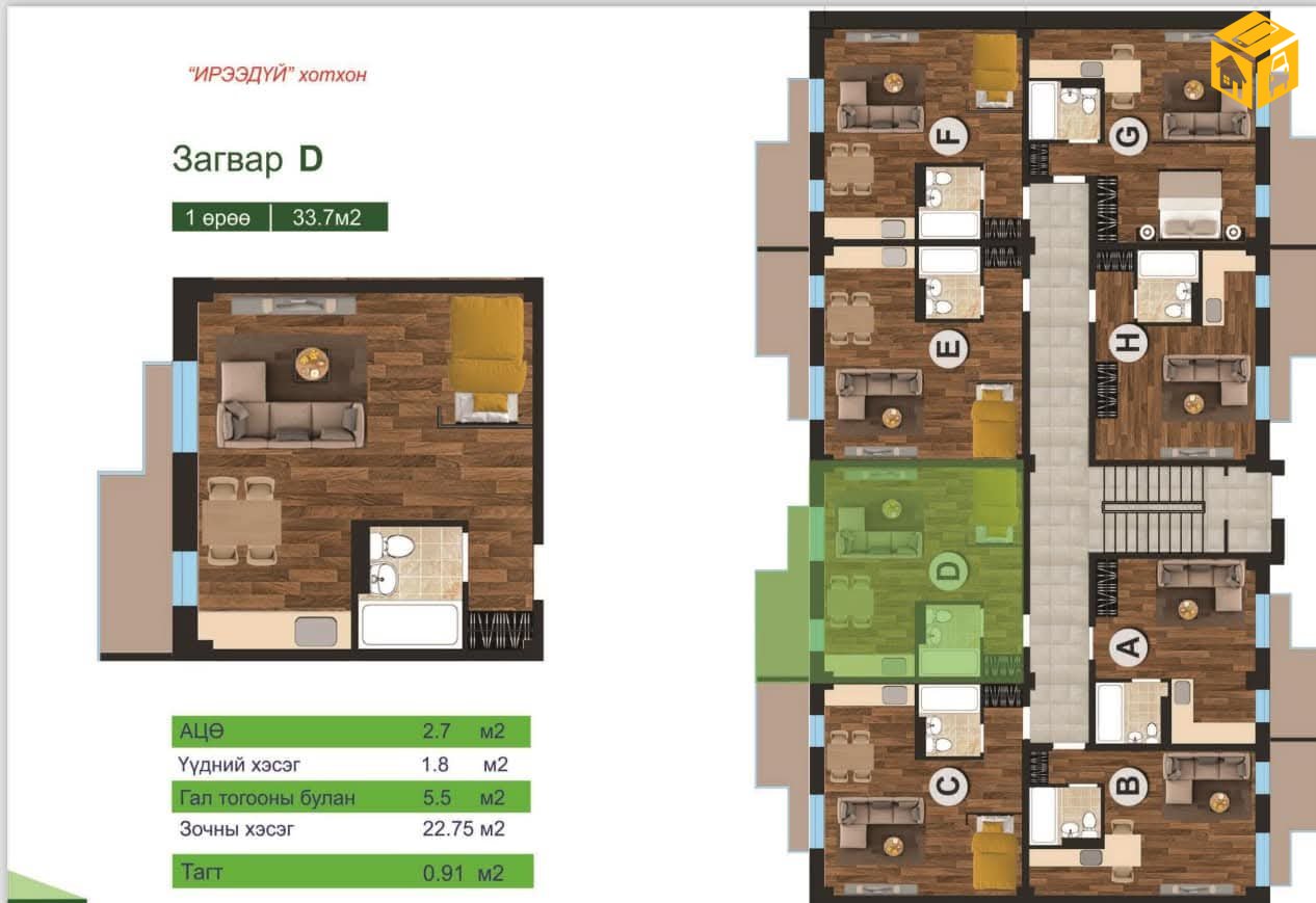 ✅32.9м.кв - 35.8м.кв 1 өрөө байрнууд худалдана.