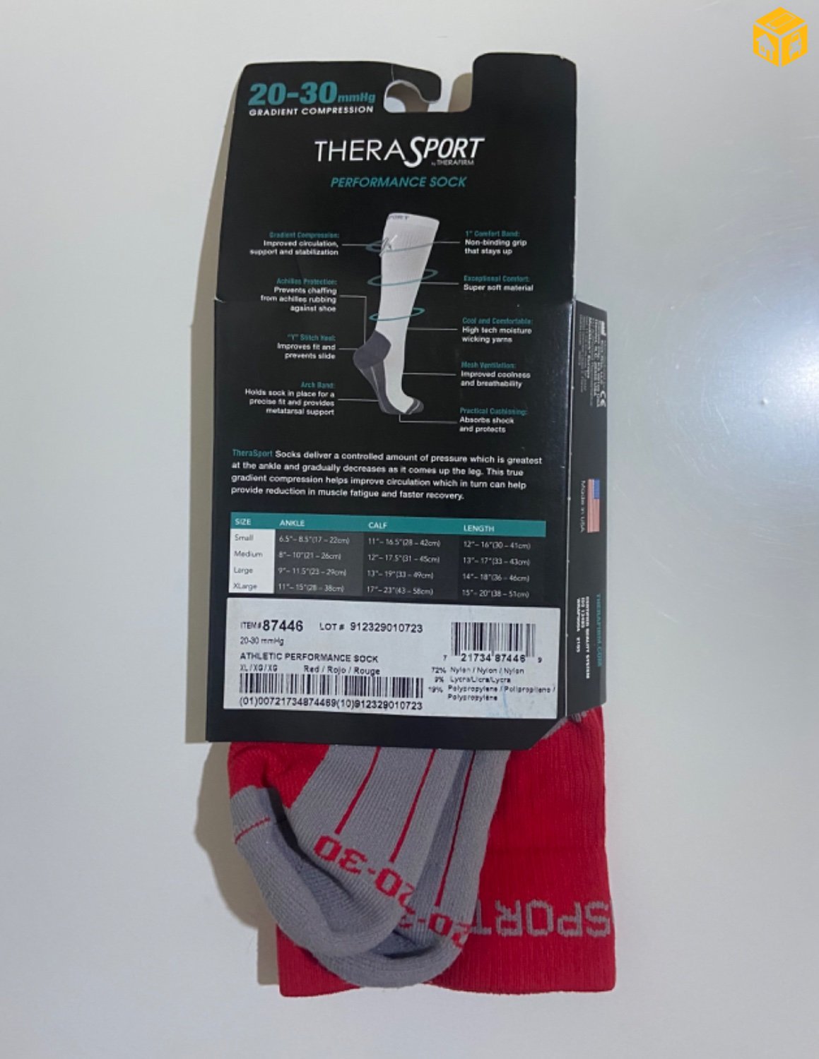 Спортын оймс. Made in USA. Хөлний шагайнд ирэх даралтыг зохицуулж цусны эргэлтийг сайжруулна. Хөл холгохоос сэргийлнэ. Агаар нэвтрүүлнэ.