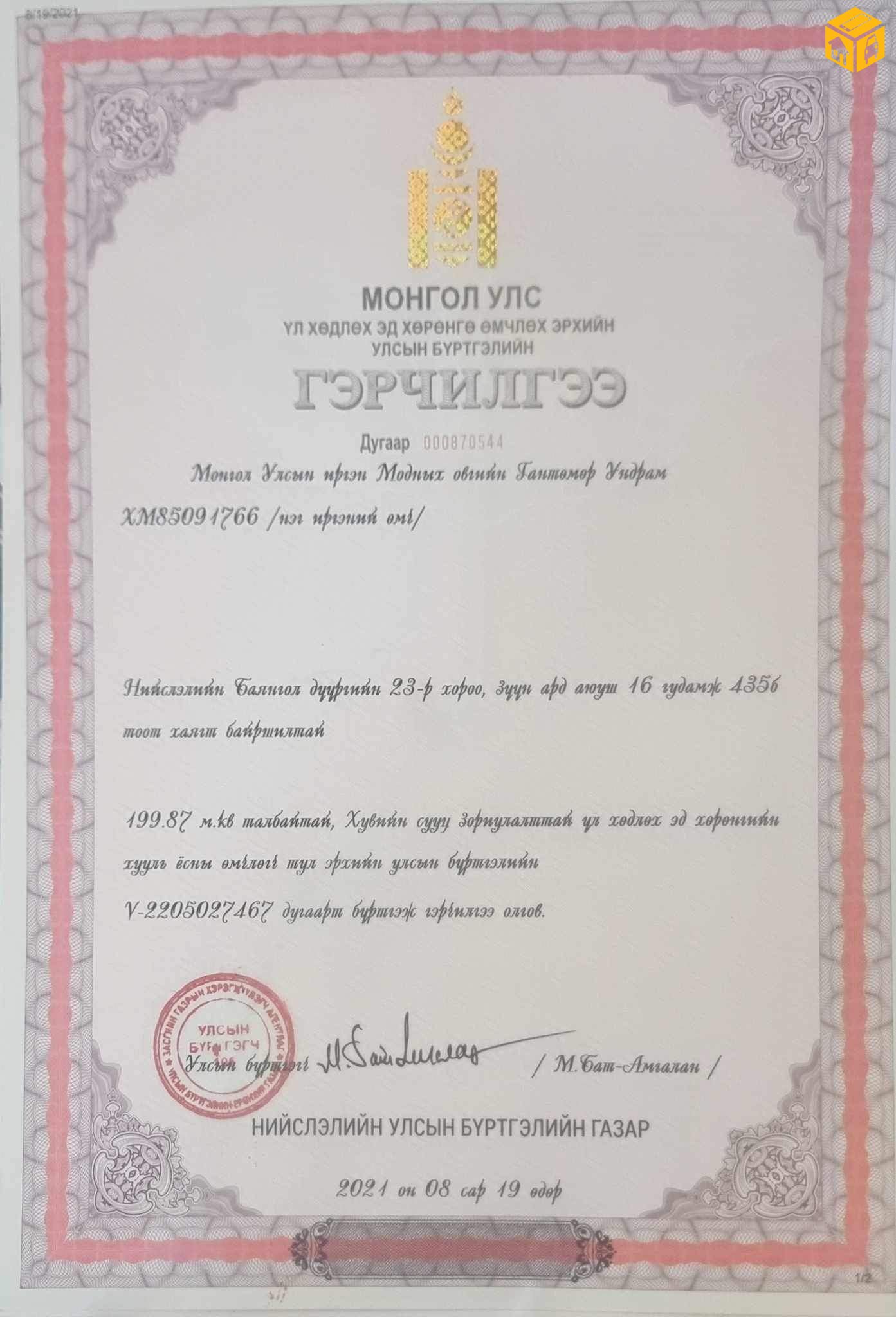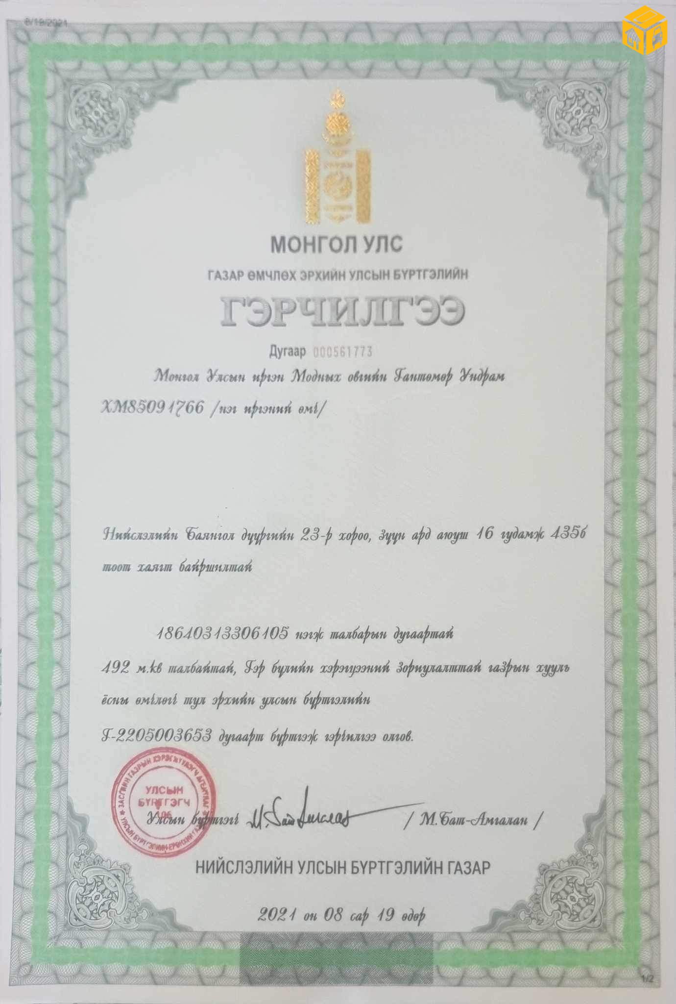 БГД, 23-р хороо, энхбаярын зам дагуу, нүүрэн талын хашаа, худаг, хороо, сургууль цэцэрлэг ойр. Одоо нийтийн байраар ашиглаж байгаа. 492 м.кв өмчлөх эрхтэй газартай, 199.87 м.кв мансардтай 1 давхартаа 6 өрөөтэй хашаа байшин зарна.