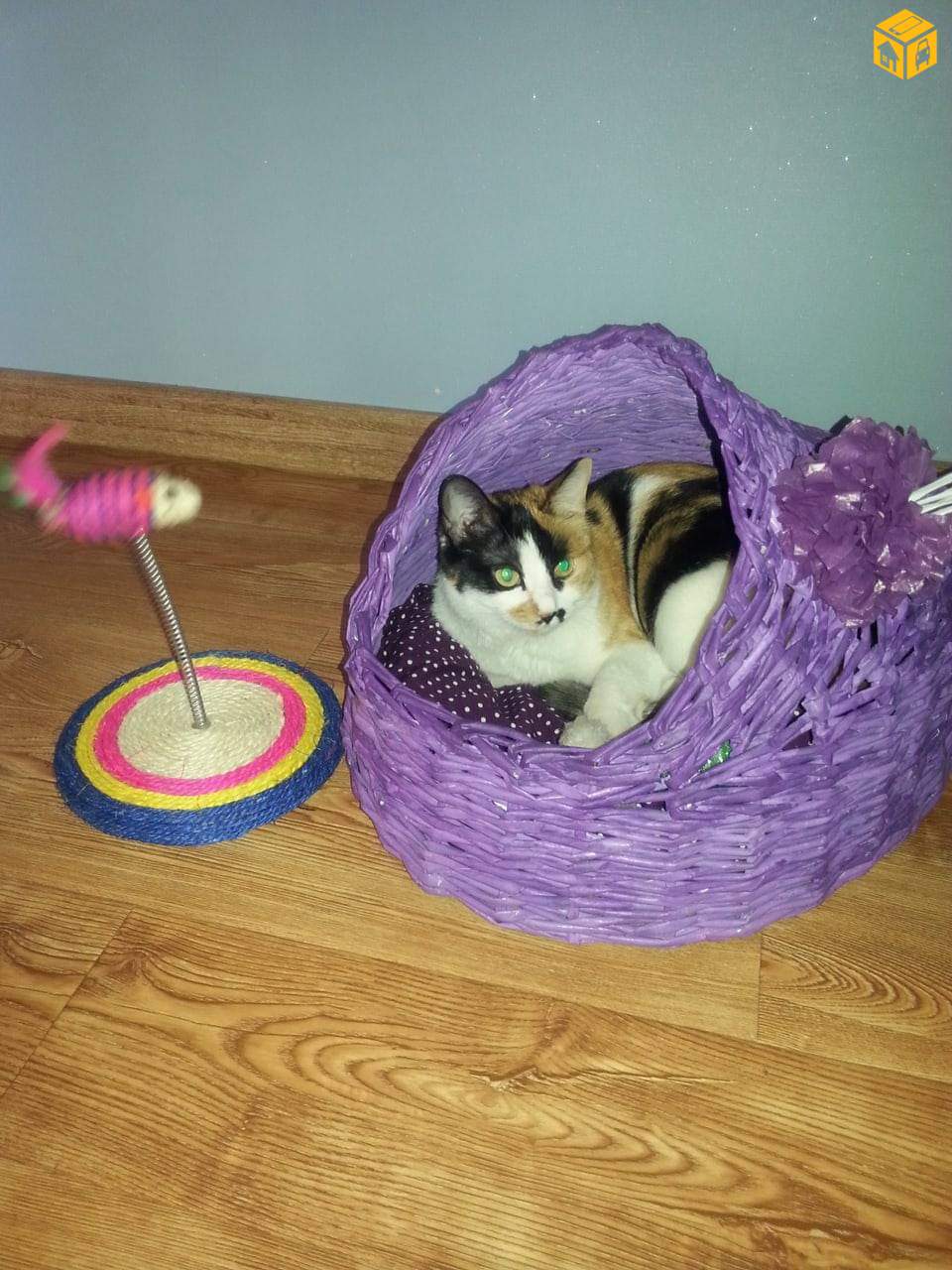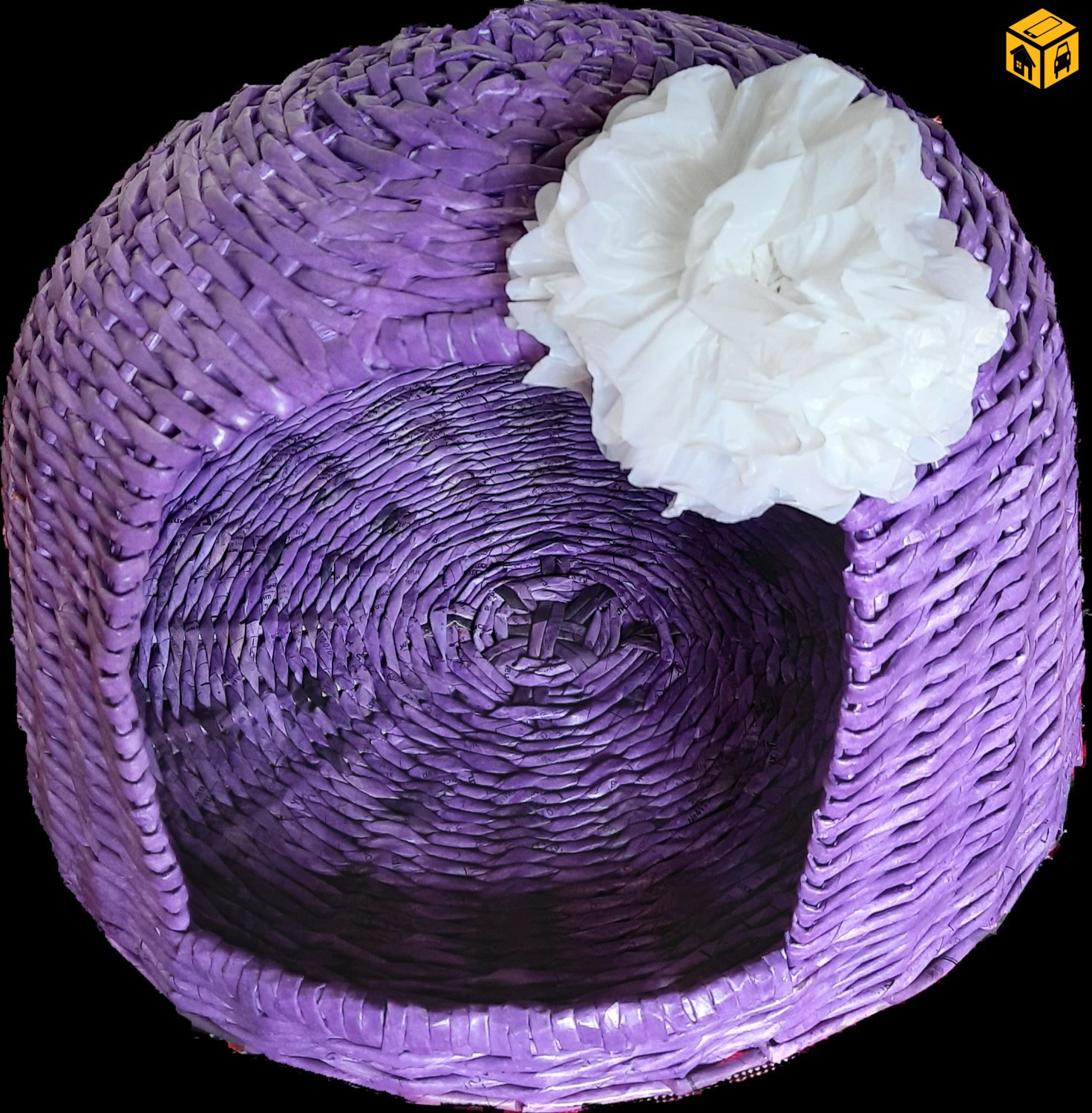 Сонингийн цаасаар сүлжиж хийсэн муурны үүр. Хөнгөн авсаархан, өнгөлөг, үзэмжтэй. Эдэлгээ сайтай.