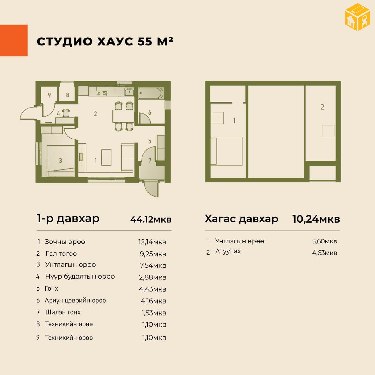 • 55м2 1 давхар сингл хаус 225сая